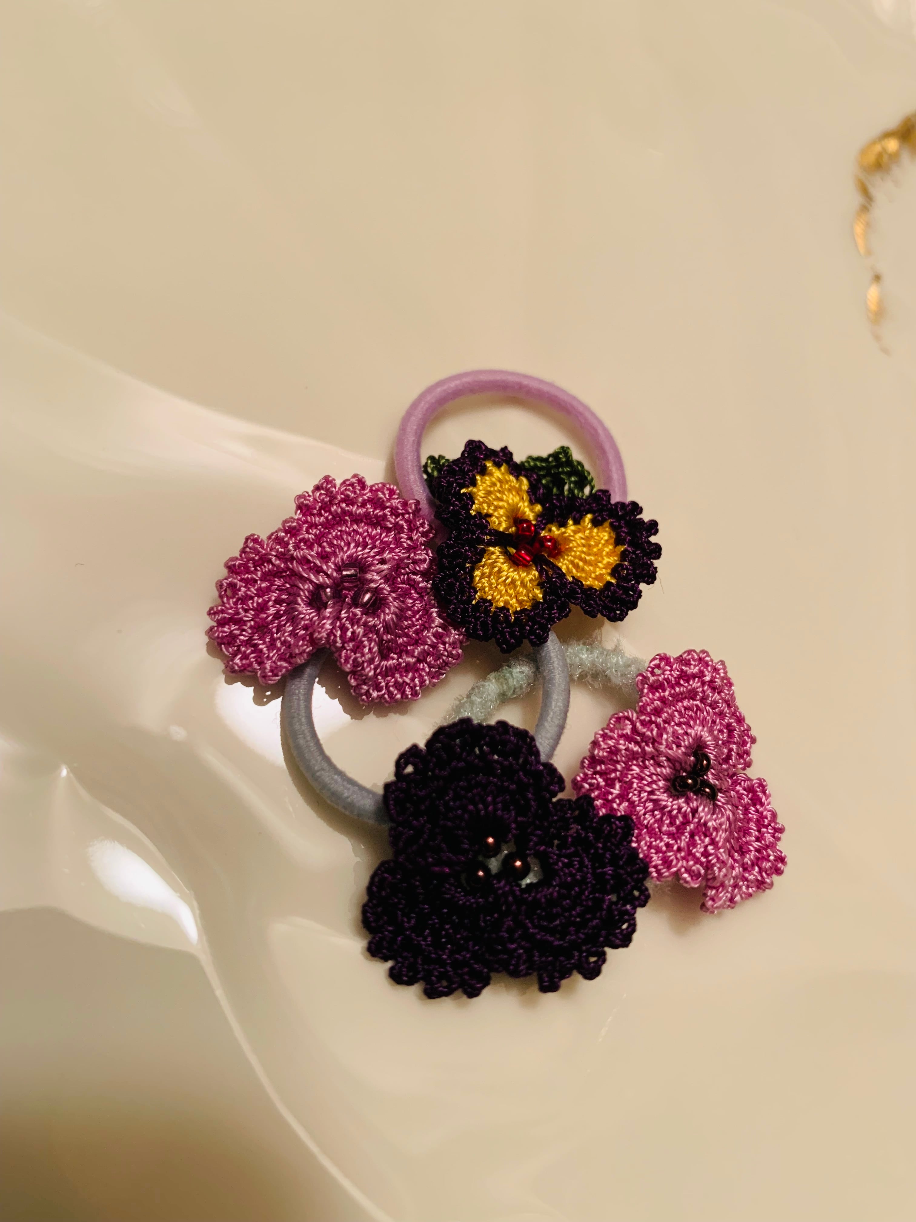 糸の色を変えてパンジーのように