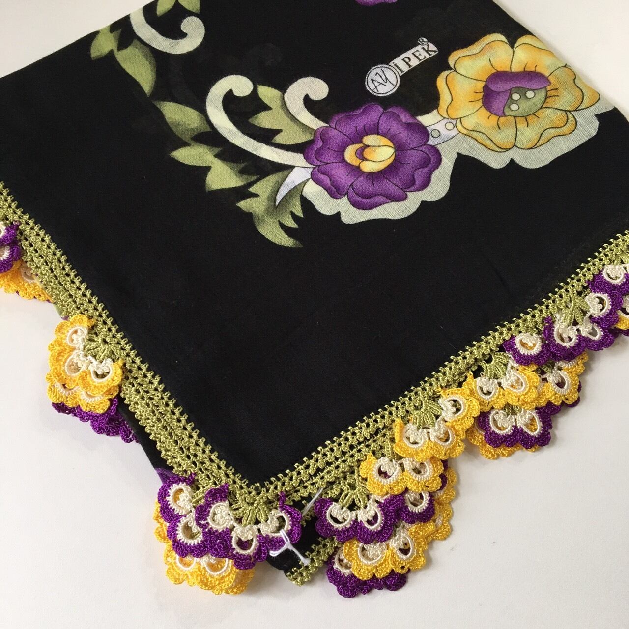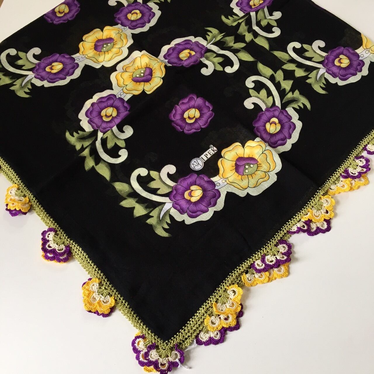 トゥーオヤの技法で作られた華やかで大きめなモチーフのオヤが特徴のスカーフになります。