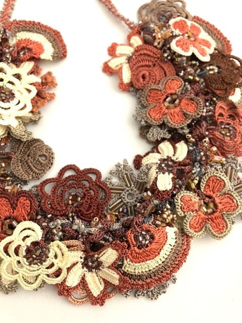 E-6フラワーガーデン ネックレス(アジャスター付き) レンガブラウン