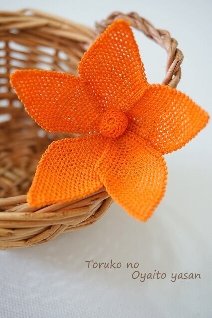 イーネオヤ スターフラワーのブローチ オレンジ系:NaBr1-ST2
