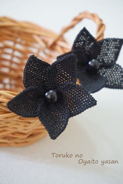 イーネオヤ スターフラワーのピアス ブラック系:NaP1-ST8
