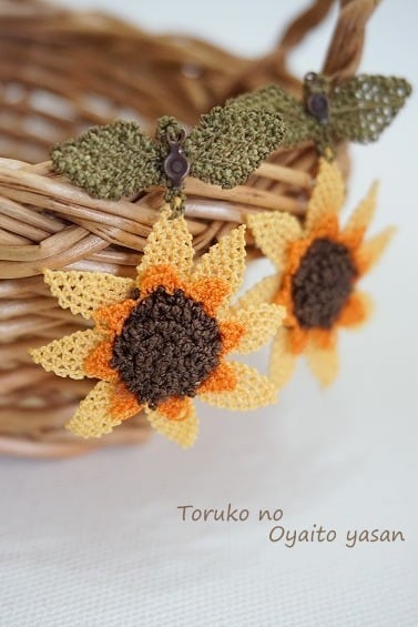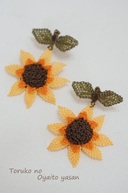 イーネオヤで作ったひまわりのピアスです。