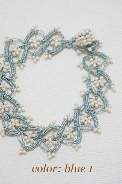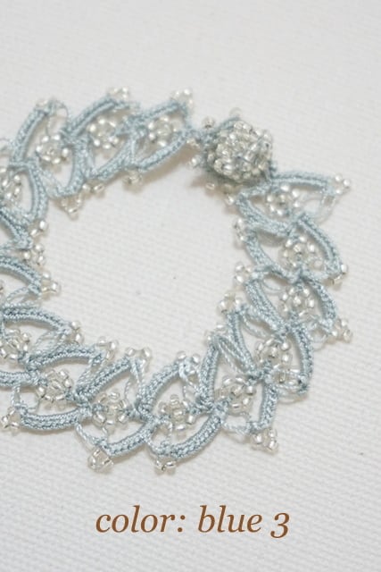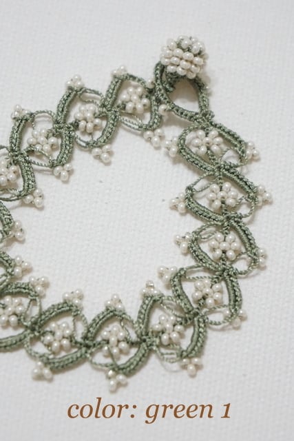 細い12号サイズのレース針を使って、小粒の良質なビーズを