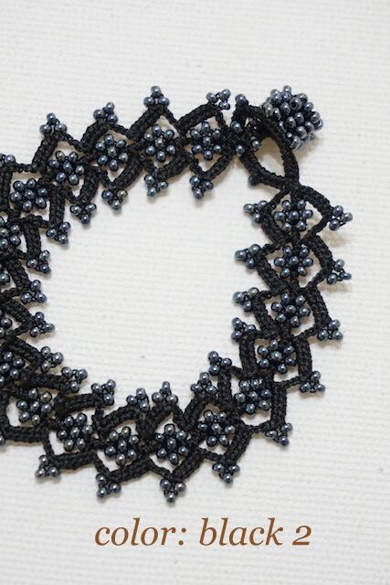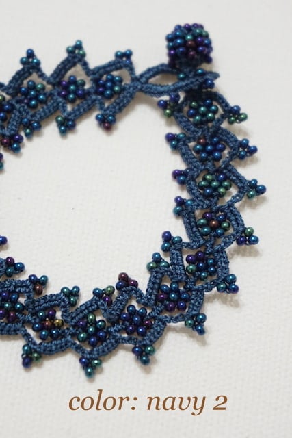 細い12号サイズのレース針を使って、小粒の良質なビーズを