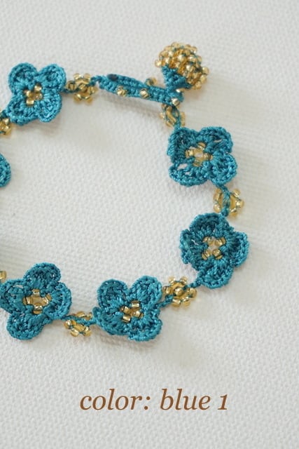 トゥーオヤとビーズで作られた4枚の花びらが可愛らしいブレスレットです。