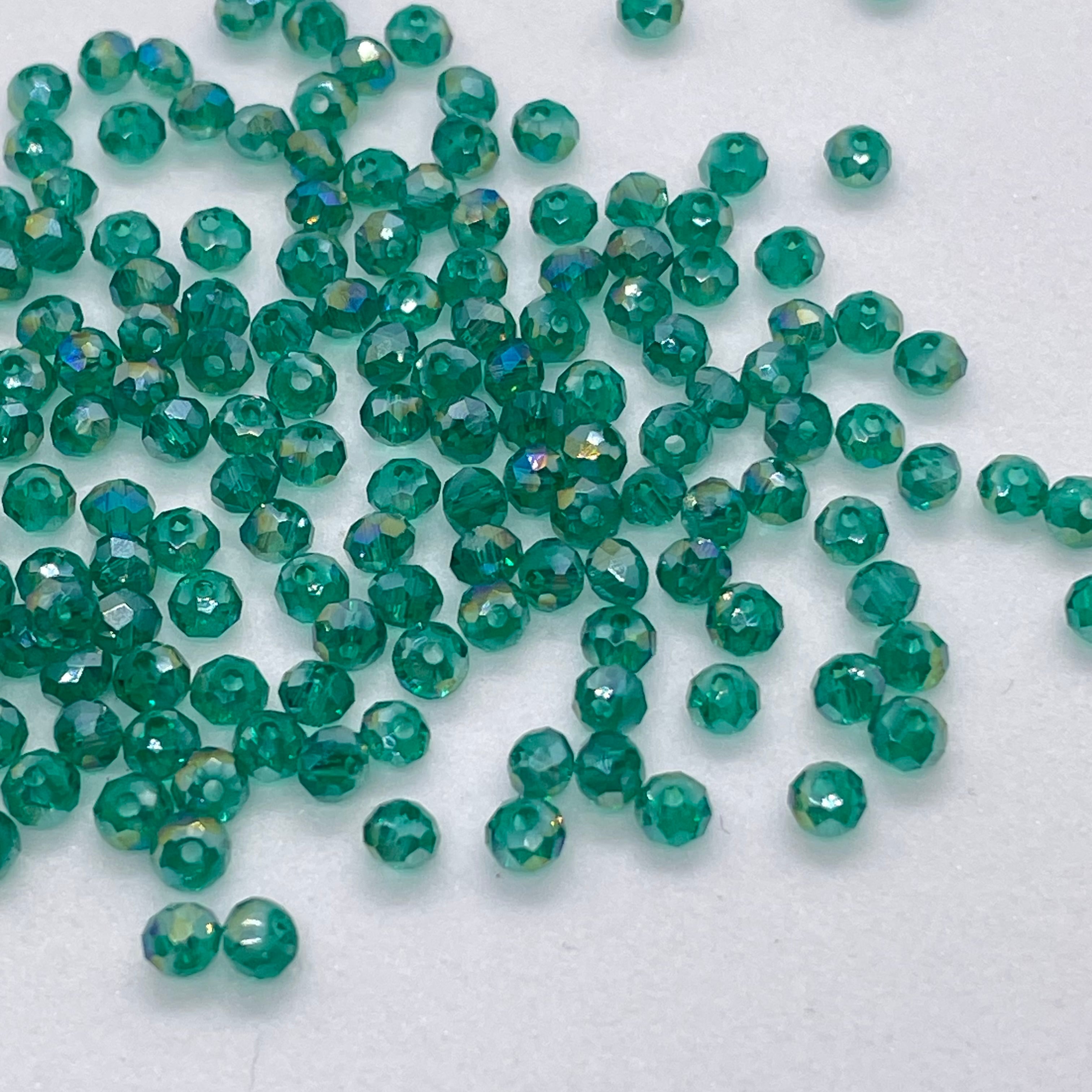 クリスタルビーズ 2mm [C-50 クリアオーロラフォレストグリーン]ボタンカット