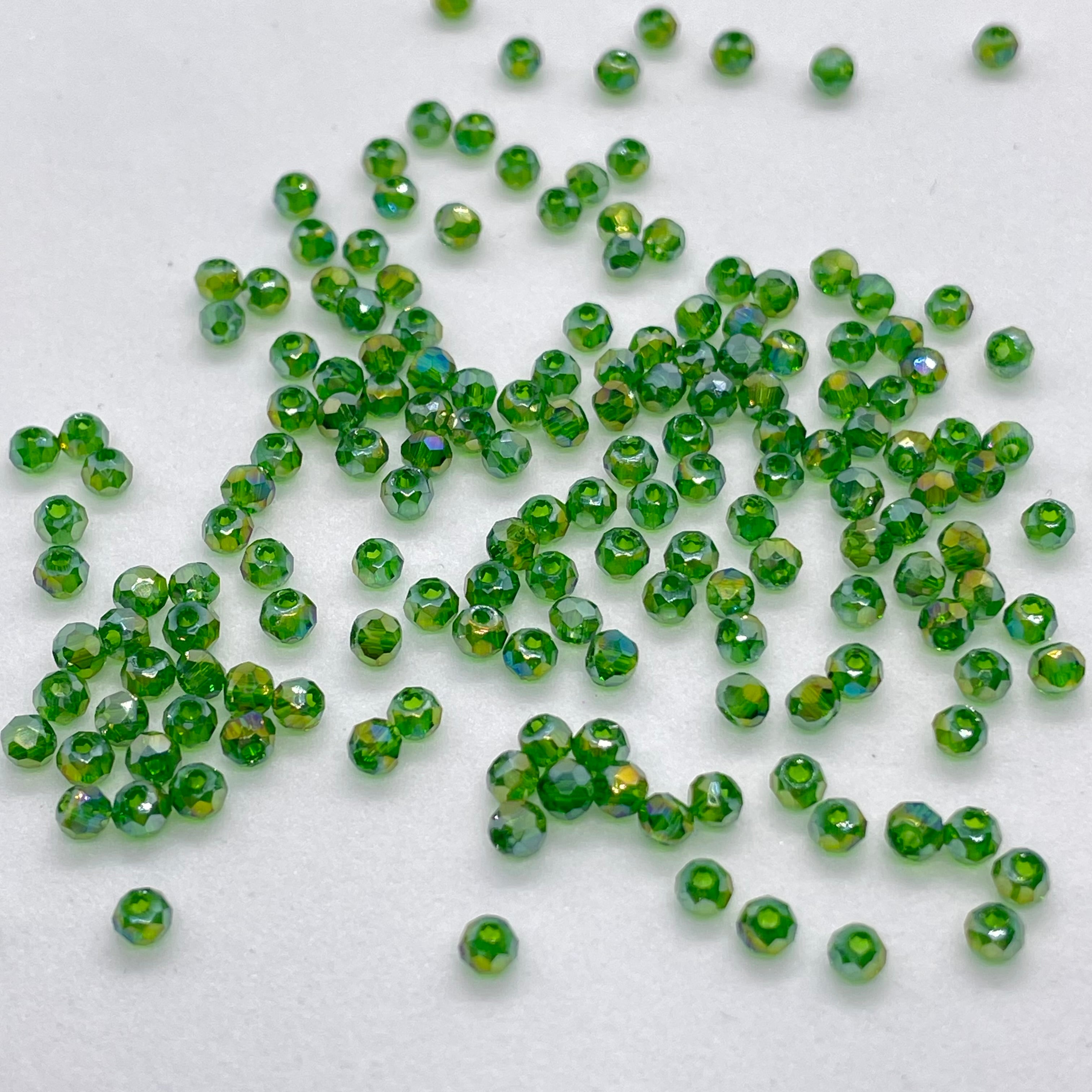 クリスタルビーズ 2mm [C-55 クリアオーロラアイビーグリーン]ボタンカット